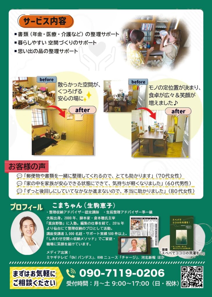 「暮らしやすい空間づくり」「思い出の品の整理」まで、