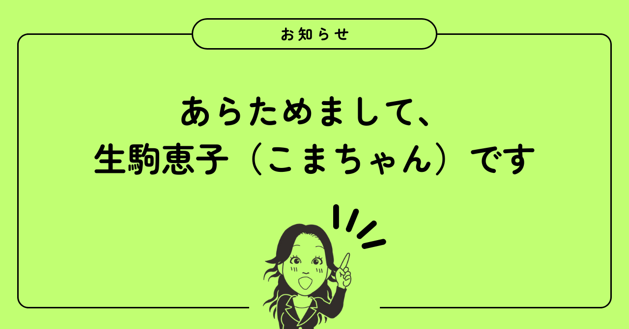 あらためまして、生駒恵子(こまちゃん)です