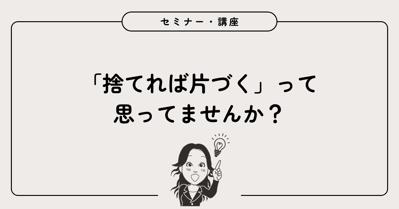 ~心も軽くなって、部屋も片づく~しあわせ空間☆収納メソッドのこまちゃんです。 前回のブログで、探し物時間が年間9万円近いコストになっているというお話をしました。 「じゃあ、とにかく捨てればいいんでしょ!」 セミナーでもそ … もっと見る
